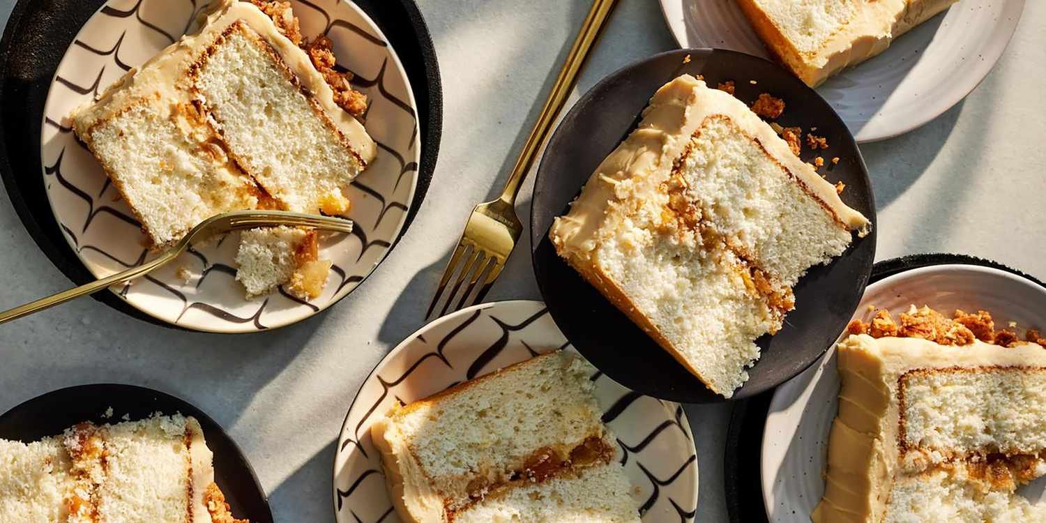 Allrecipes Recipe Developer Juliana Hale developed this fall-inspired cake she describes as a “tender two-layer white cake [that] includes a layer of gooey apple filling, sweet caramel frosting, and a crunchy streusel topper.” It’s the best of both world—the apple filling and streusel topping of a crumble, with the tender crumb and creamy dressing of a caramel cake. Yum!