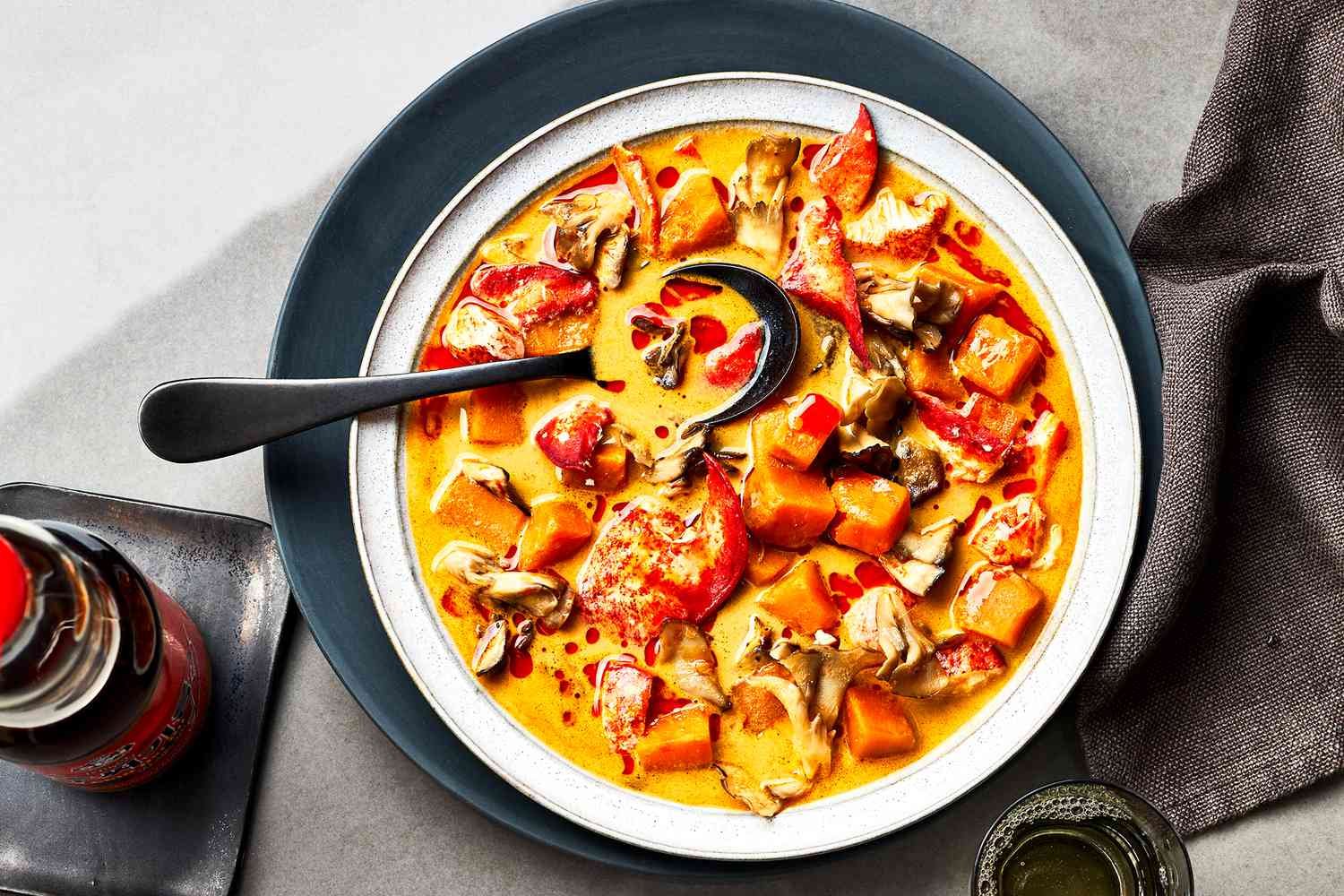 Green Curry Lobster Stew with Sweet Potato and Mushrooms