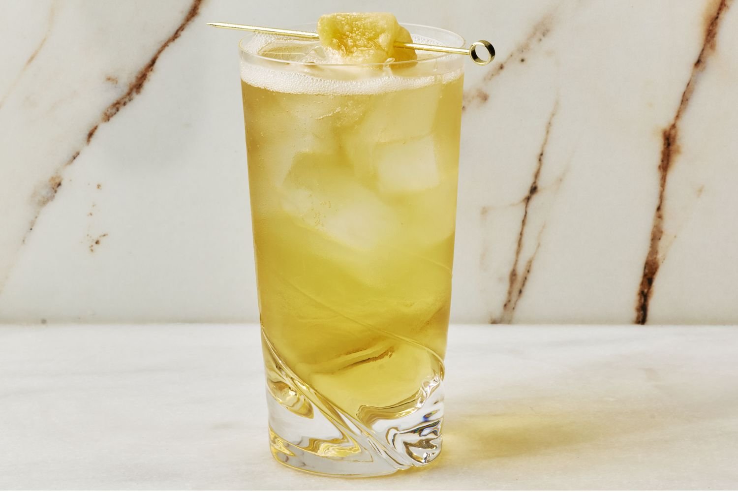 The Apple-Ginger Highball is a refreshing bourbon cocktail with warming ginger, nutty aromas, and balanced sweet-tart flavors. It’s topped with dry sparkling cider for a wallop of orchard-fruit notes.