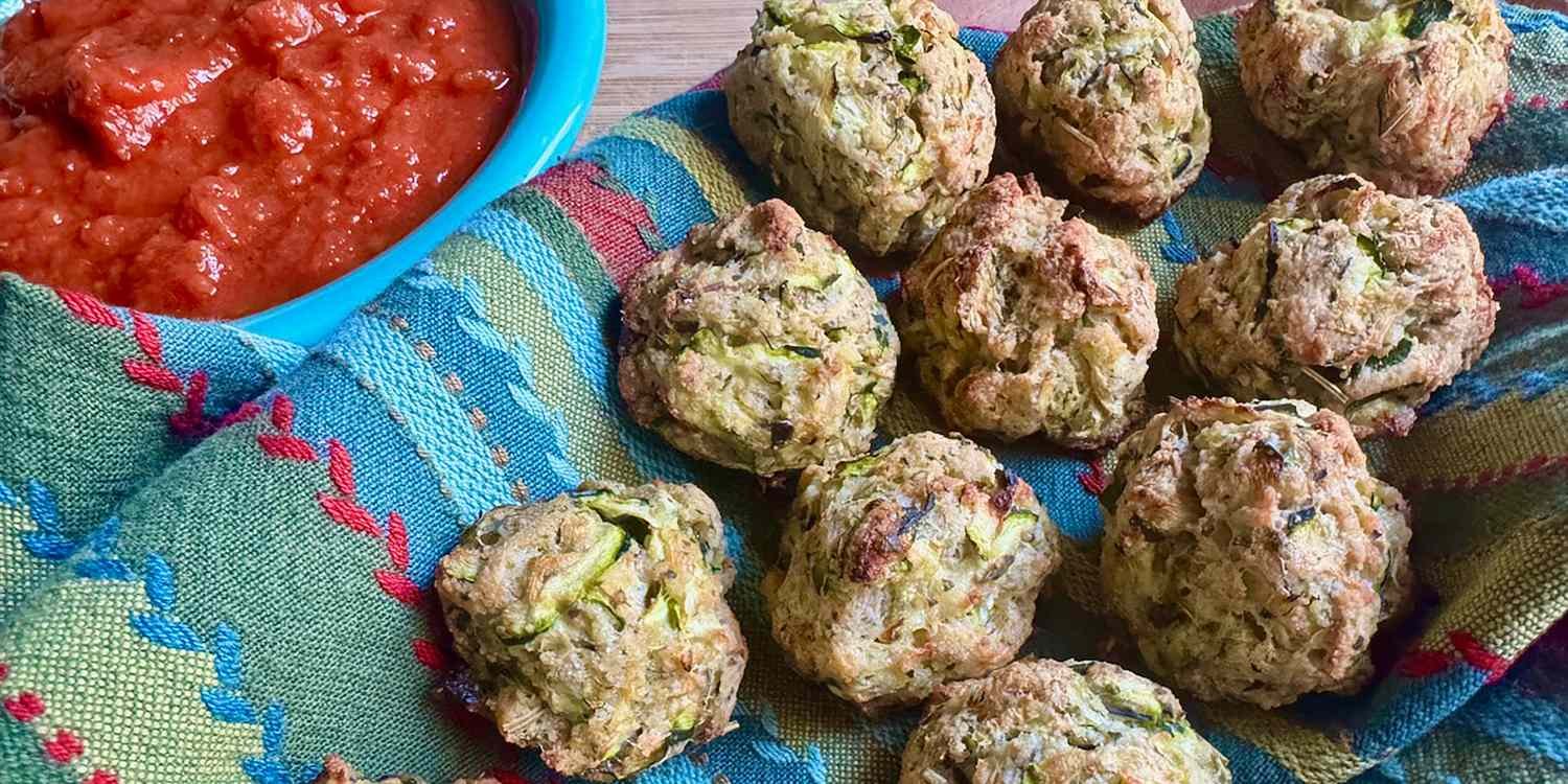 These baked zucchini bites are bite-sized baked appetizers made with shredded zucchini mixed with breadcrumbs, Parmesan, and seasonings. They are a tasty way to use zucchini. Serve with marinara makes as dipping sauce.