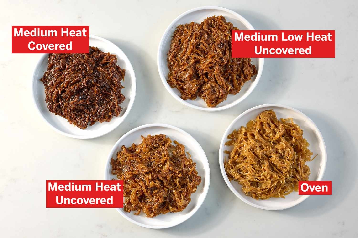 - With a total cook time of about an hour, this technique delivers the richest flavor and most even texture in the shortest amount of time of all the methods tested, setting a new standard for caramelized onions.