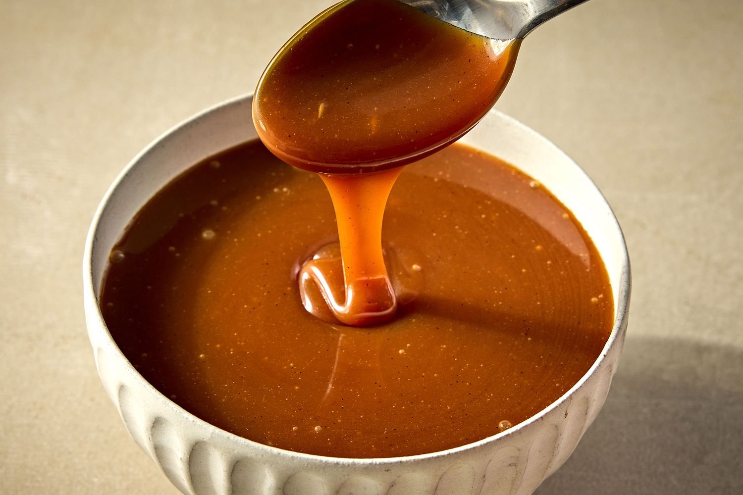 For this recipe, the most important tool is a stainless steel pan with enough heft to distribute heat evenly. Avoid flimsy or thin pans, which can cause the sugar to burn, as well as dark nonstick surfaces that make it difficult to judge the caramel’s color. In addition, while experienced chefs can often judge when sugar has caramelized to the right stage by sight and smell alone, a candy thermometer is especially helpful if you’re not practiced at making caramel. Monitoring the temperature of the sauce ensures the sugar reaches the right temperature for a perfect amber hue and helps to avoid crystallization, which can give the sauce a gritty texture.