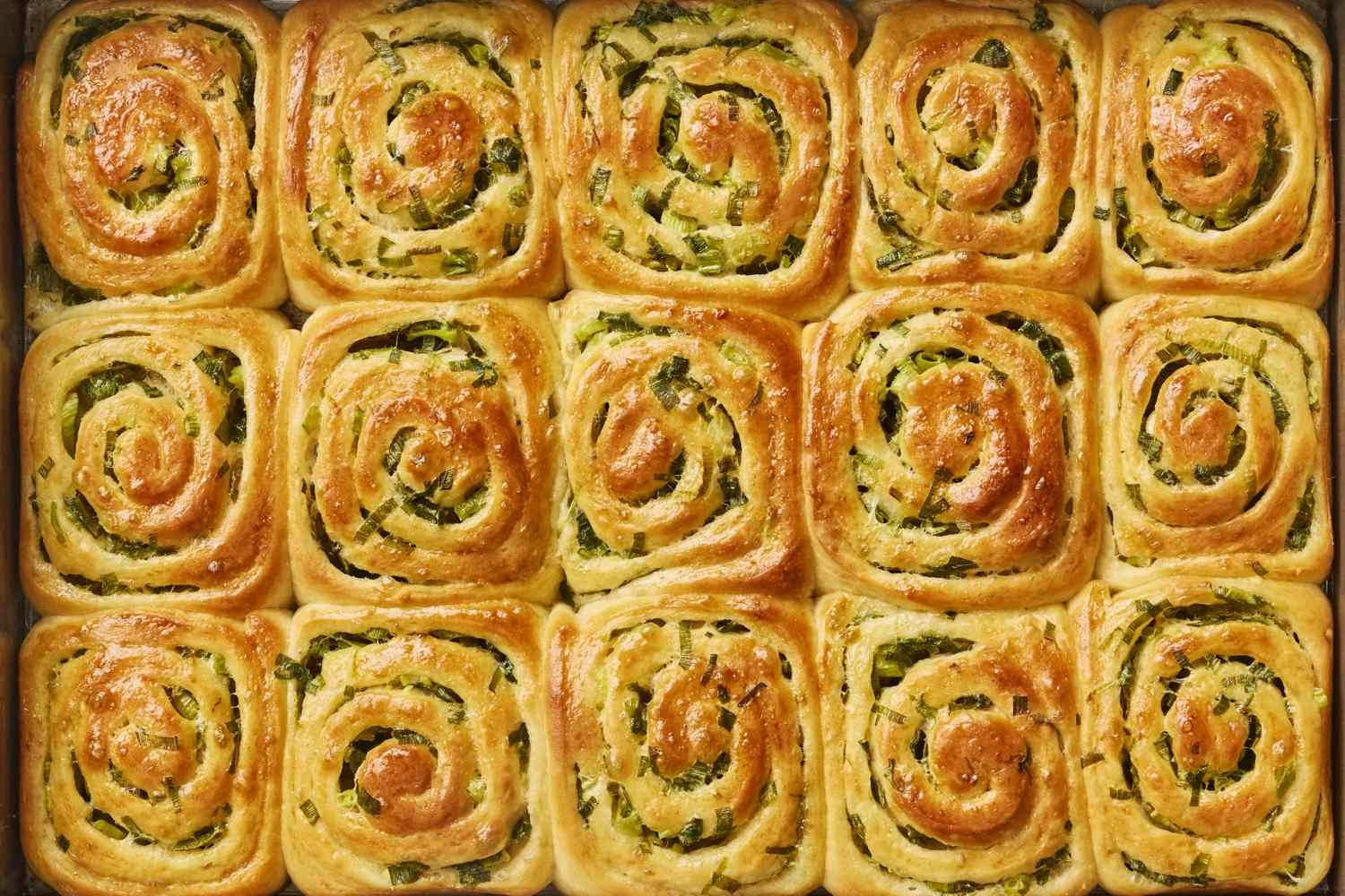 • Both the light and green parts of the scallion work in this recipe. If you’re making 15 rolls, add a touch more butter, and extend bake time as noted.