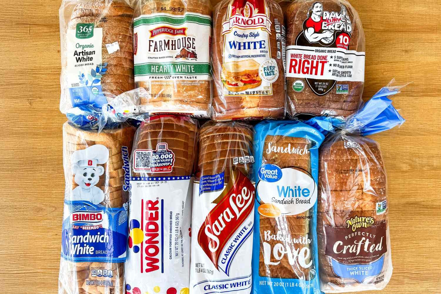 We chose nine of the most popular white breads found in grocery stores. For this test, we exclusively tested packaged, sliced white sandwich loaves and excluded varieties like whole wheat or rye to keep an accurate side-by-side comparison. We also did not test any artisan white breads like baguette or ciabatta.Â